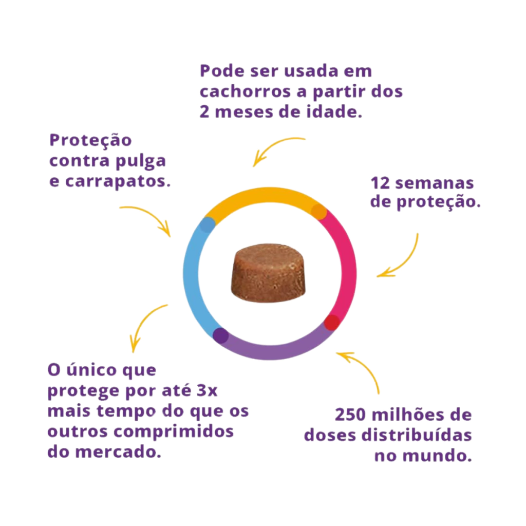 – Contém 1 comprimido mastigável de 1000mg de Fluralaner.