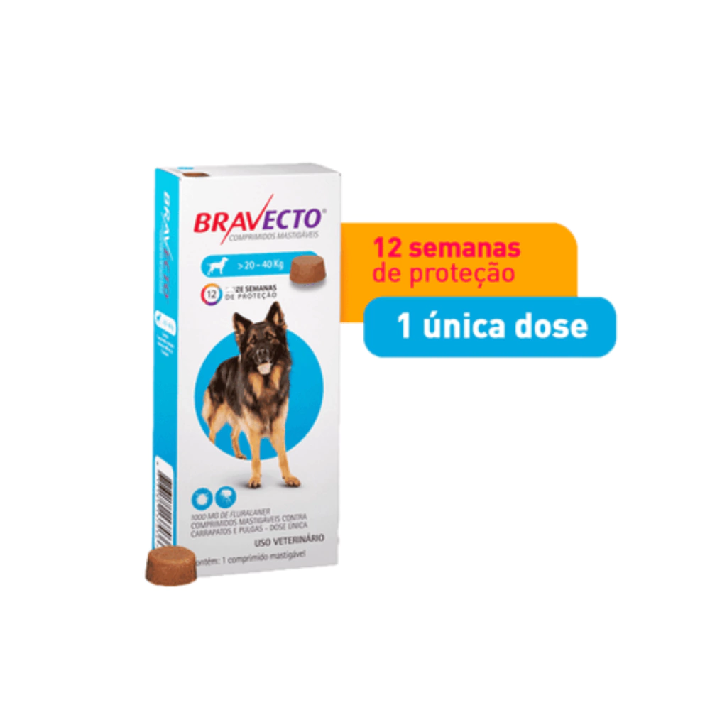 Bravecto é indicado para o tratamento de infestações por carrapatos e pulgas em cães, proporcionando 12 semanas de proteção. Bravecto é um inseticida e acaricida, sistêmico com longa duração de ação, que promove eficácia imediata e persistente por 12 semanas contra carrapatos e pulgas. Os carrapatos e pulgas devem estar aderidos ao cão, e já tendo iniciada a alimentação para serem expostos ao princípio ativo.