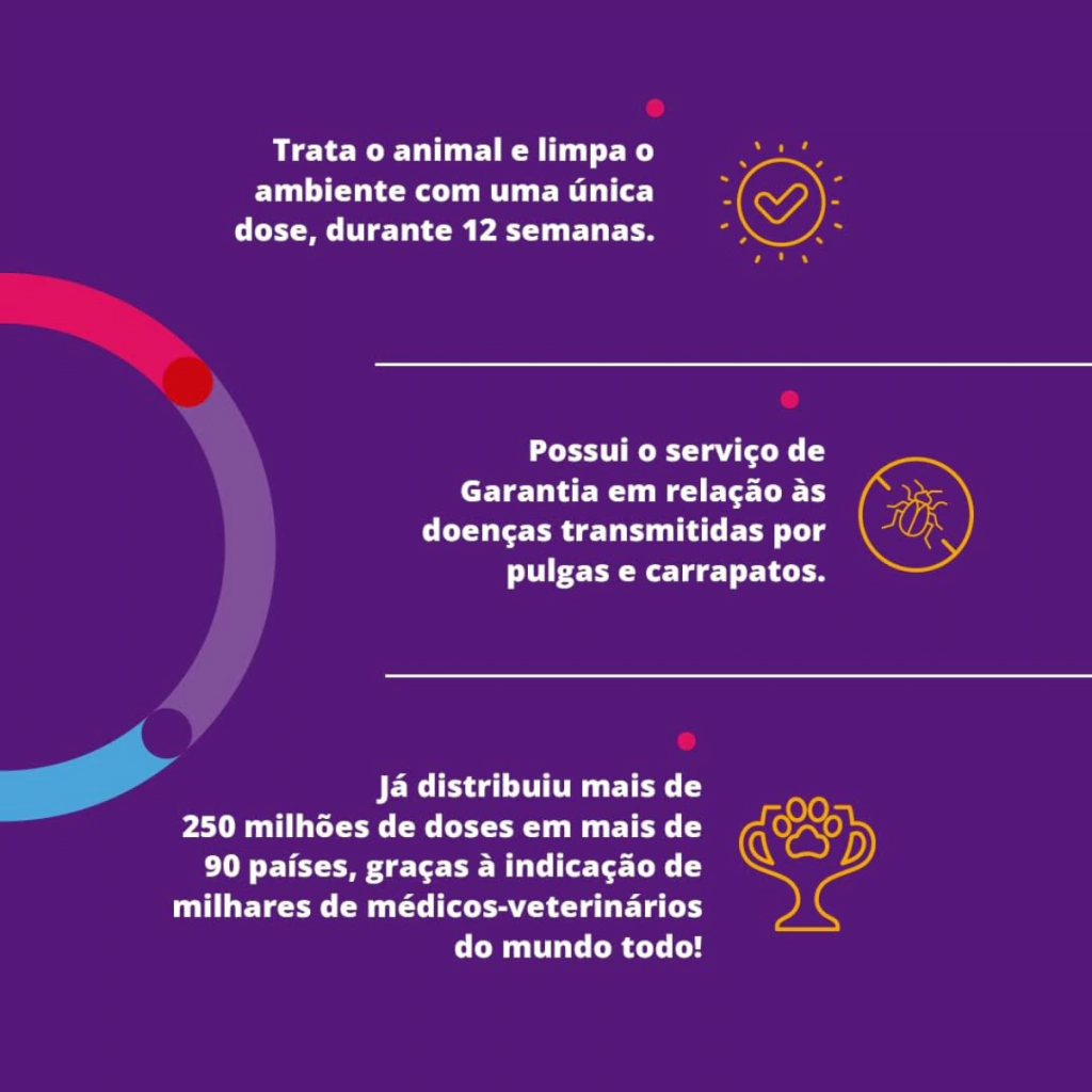Eficácia imediata: Elimina 100% dos carrapatos em 12 horas.
