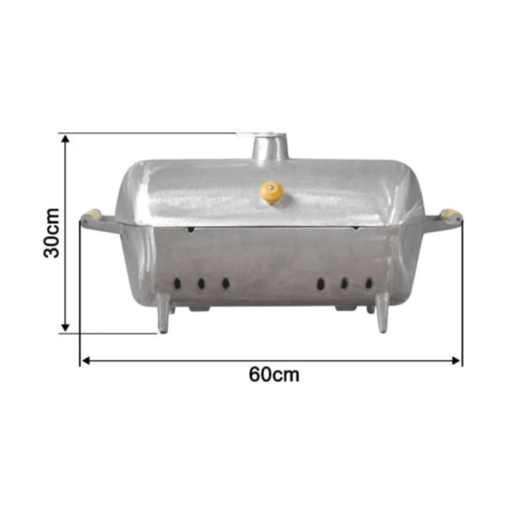 Com estrutura em alumínio fundido, essa churrasqueira garante uma excelente distribuição de calor, proporcionando um aquecimento rápido e uniforme, o que ajuda a economizar carvão e agilizar o preparo dos alimentos.