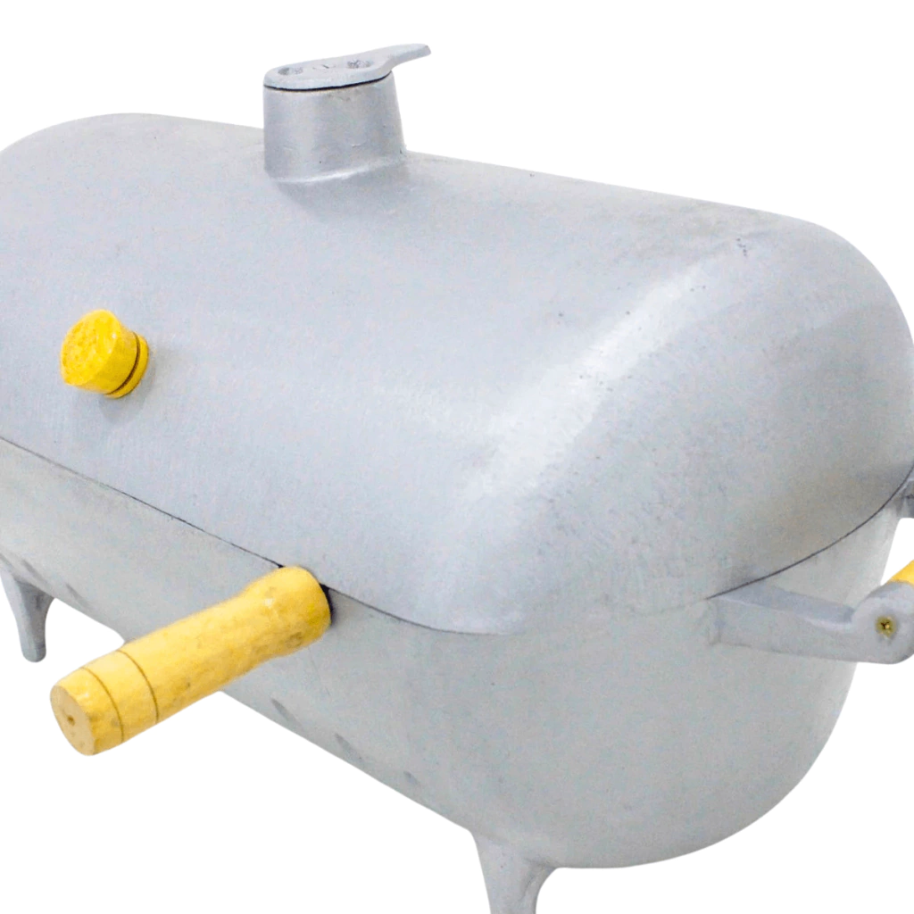 Seu design compacto e portátil permite que você a use em espaços pequenos, como varandas, sacadas e áreas gourmet, sem abrir mão da eficiência. Além disso, as alças em madeira oferecem mais segurança e facilidade no manuseio, mesmo durante o uso.