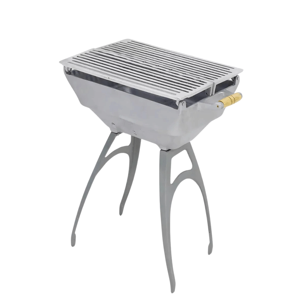 01 Churrasqueira de alumínio com pés altos – 29 cm (largura) x 59 cm (comprimento)
