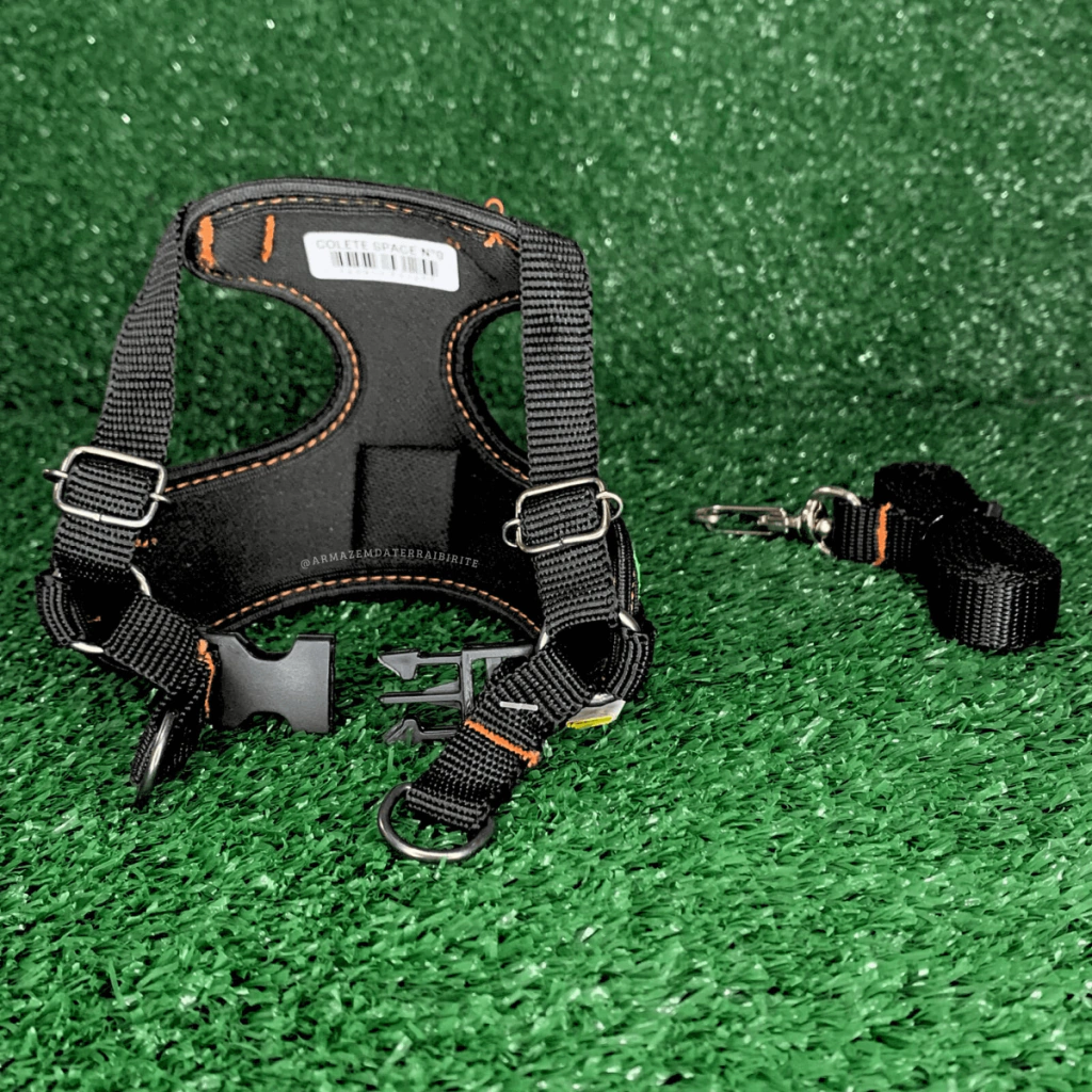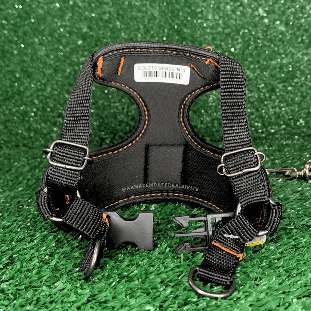 Com fechos resistentes e alças ajustáveis, ele oferece praticidade na colocação e remoção, além de um encaixe firme para evitar escapadas. Ideal para passeios diários, garantindo mobilidade e bem-estar ao seu cão.