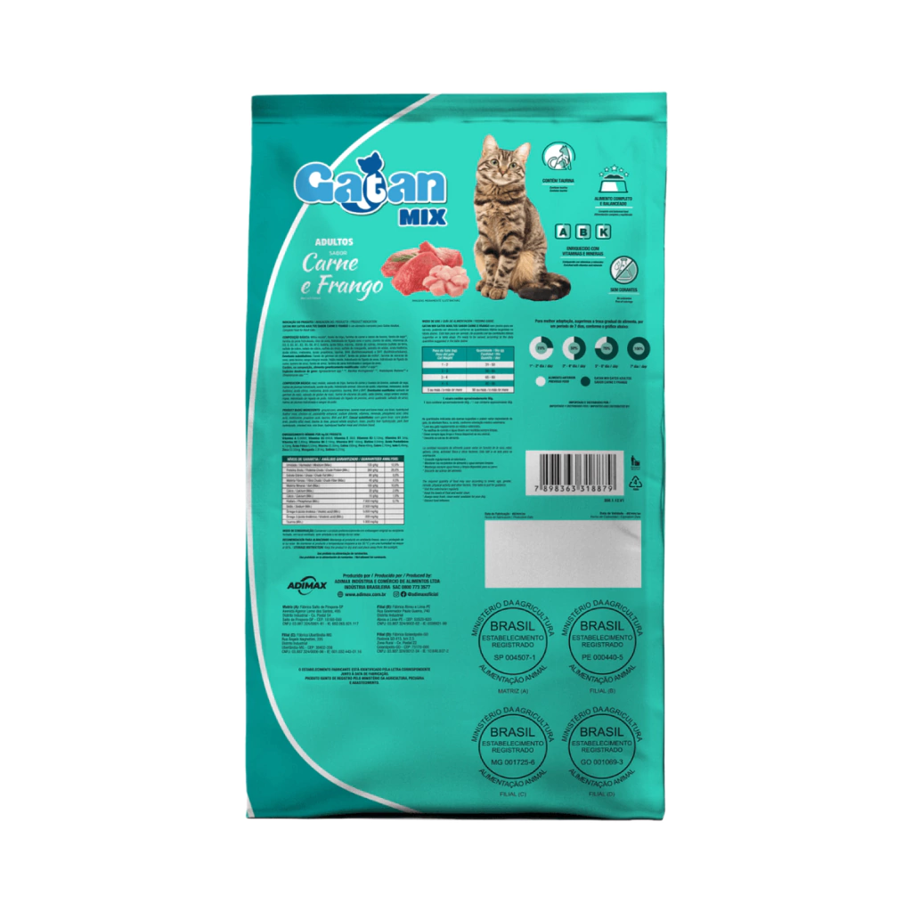 Gatan Mix Gatos Adultos Carne e Frango é um alimento completo que vem pronto para ser servido para gatos.