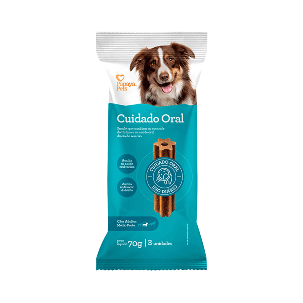 Petisco Papaya Pets Cuidado Oral para Cães Adultos Porte Médio Sabor Frango
