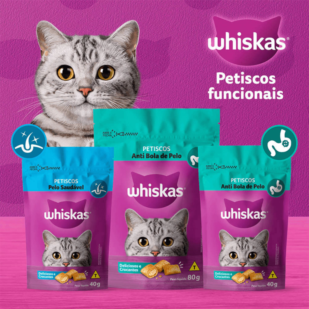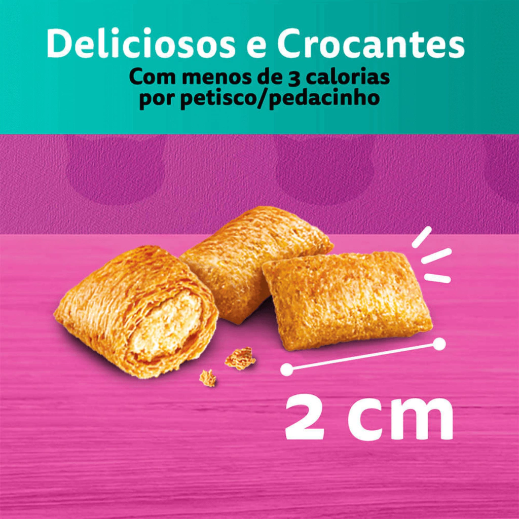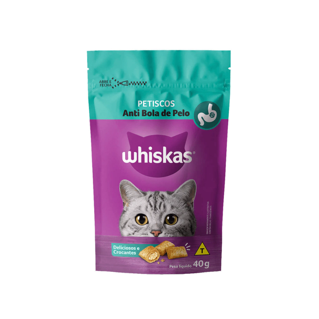 O Petisco Whiskas Temptations Anti Bola de Pelo Para Gatos Adultos é uma opção irresistível para oferecer entre as refeições. Além de delicioso, ele auxilia na eliminação dos pelos ingeridos, ajudando a prevenir a formação de bolas de pelo e promovendo um sistema digestivo mais saudável. Com uma textura crocante por fora e macia por dentro, esses petiscos são nutritivos e podem ser utilizados como forma de recompensa ou agrado para o seu felino. Agora em uma nova embalagem com menos plástico, trazendo praticidade e sustentabilidade com o sistema de abre e fecha.