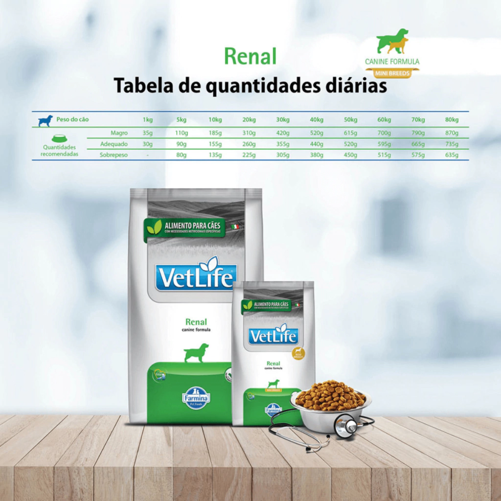 RESTRIÇÕES E OUTRAS RECOMENDAÇÕES: Vet Life Natural Canine Renal Mini Breeds é contraindicado para filhotes, cadelas em gestação ou lactação e animais sadios.