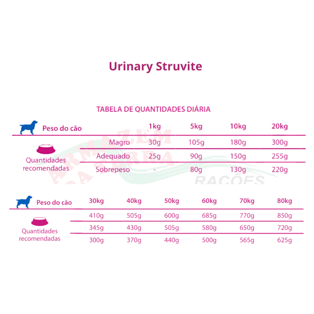 Alimento coadjuvante seco indicado para cães adultos com distúrbios urinários provocados pela formação de cristais e urólitos de estruvita (fosfato amônio magnesiano).