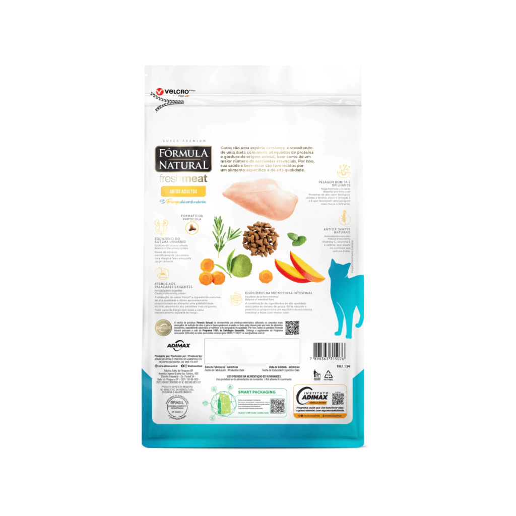 Desenvolvida por médicos veterinários, a linha Fórmula Natural Fresh Meat utiliza os conceitos mais avançados da nutrição de cães e gatos. Naturalmente saborosa e nutritiva, possui como grande diferencial a utilização de carne fresca e fontes especiais de carboidratos, fibras, vitaminas e minerais, como as frutas e vegetais. É uma linha completa que oferece versões com cuidados específicos para diferentes necessidades e estágios de vida. Fórmula Natural Fresh Meat Gatos Adultos Sabor Frango oferece todos os cuidados para um ótimo desenvolvimento de gatos adultos.