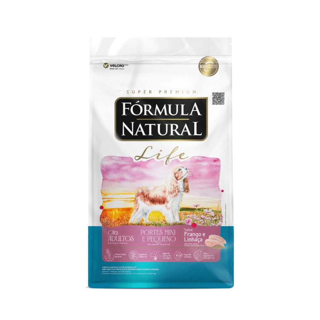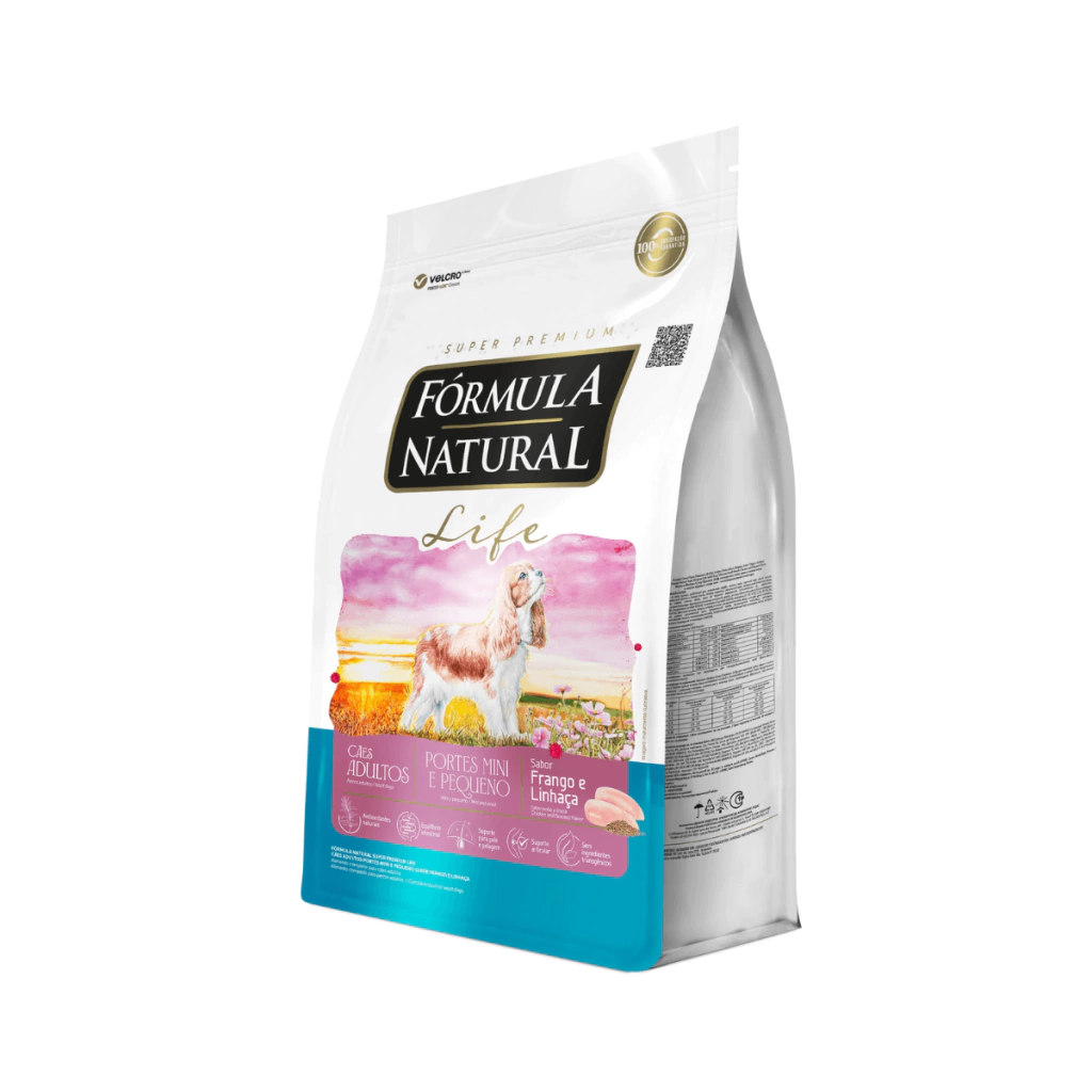 Com um conceito natural do produto às embalagens, a Fórmula Natural foi formulada para promover uma vida mais saudável, longeva e de bem-estar para cães e gatos. A linha oferece versões para diferentes portes e idades e proporciona entre outros benefícios, cuidados com a pele e pelagem, equilíbrio da flora intestinal e antioxidantes naturais. Fórmula Natural Super Premium Cães Adultos Portes Mini e Pequeno oferece todos os cuidados para cães adultos de porte miniatura e pequeno, a partir de um ano de idade.