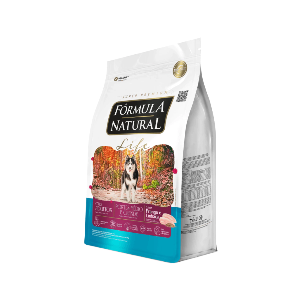 Com um conceito natural do produto às embalagens, a Fórmula Natural foi formulada para promover uma vida mais saudável, longeva e de bem-estar para cães e gatos. A linha oferece versões para diferentes portes e idades e proporciona entre outros benefícios, cuidados com a pele e pelagem, equilíbrio da flora intestinal e antioxidantes naturais. Fórmula Natural Super Premium Cães Adultos Portes Médio e Grande oferece todos os cuidados para cães adultos de porte médio e grande.