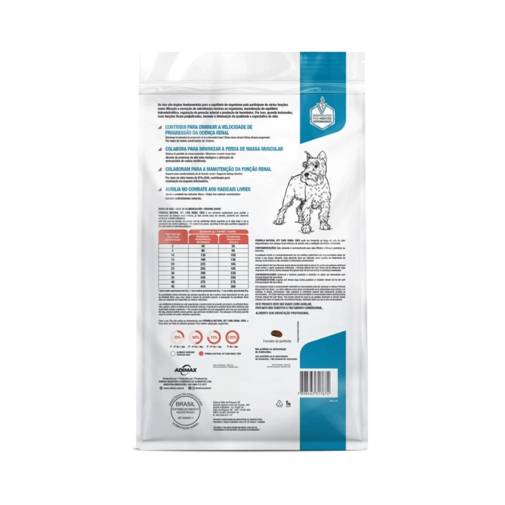 Fórmula Natural Vet Care Renal Cães é um alimento coadjuvante desenvolvido para auxiliar no tratamento de cães diagnosticados com doença renal crônica.