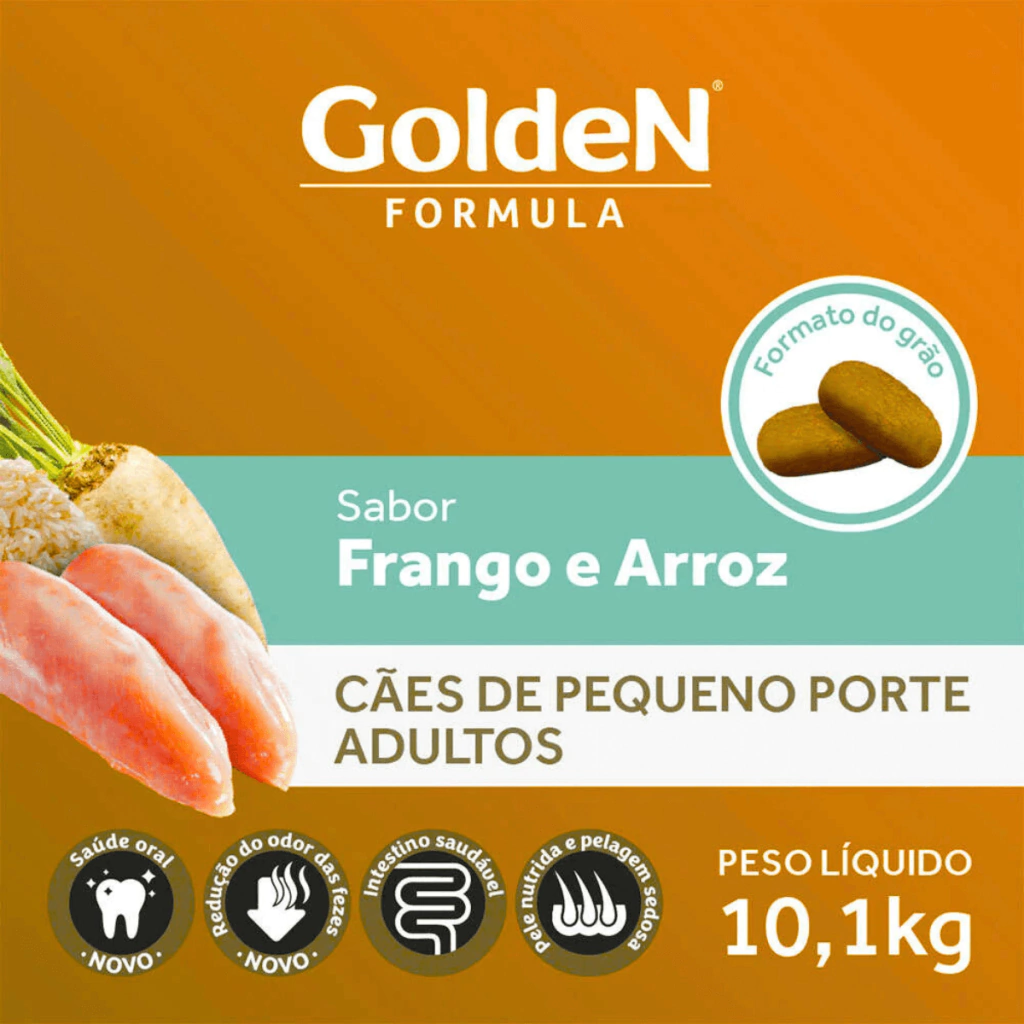 Se você busca um alimento de alta qualidade, desenvolvido especialmente para cães adultos de pequeno porte, GoldeN® Formula Adultos Frango & Arroz Mini Bits é a escolha ideal!