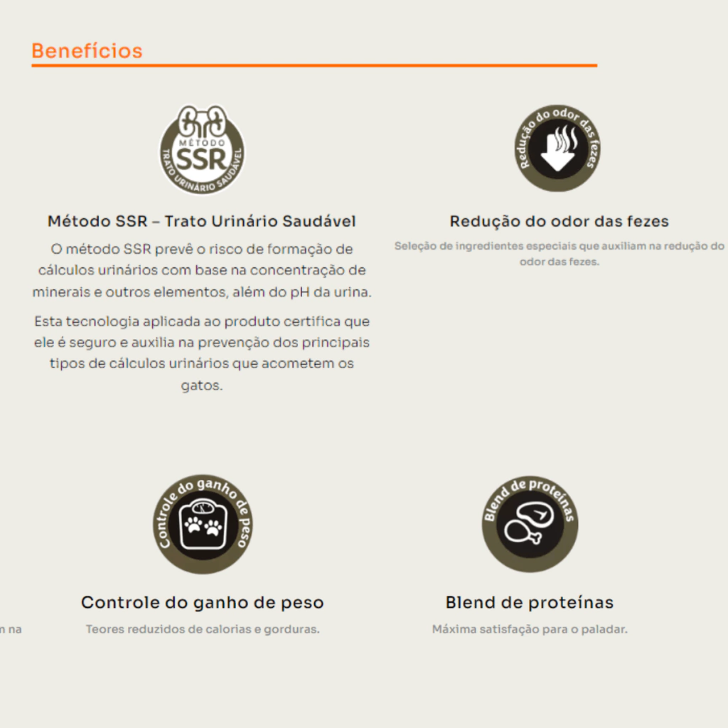 O alimento também possui uma seleção de ingredientes especiais que permitem a redução do odor das fezes. Tudo isso garantindo nutrição ótima e saudável, com sabor inigualável.
