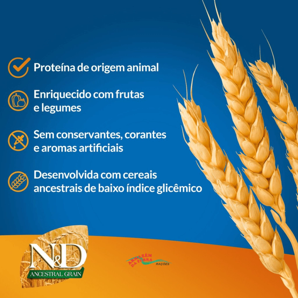 carne de frango (mecanicamente separada), farinha de vísceras de aves, ovo desidratado, aveia, sorgo, cevada, farinha de peixe, óleo de frango, óleo de peixe, polpa de beterraba, casca de ervilha, semente de psyllium, levedura seca de cervejaria, abóbora desidratada, brócolis desidratado, cenoura desidratada, espinafre desidratado, maçã desidratada, blueberry desidratado, aditivos prebióticos (FOS e MOS), DL-metionina, taurina, L-carnitina, sulfato de condroitina, sulfato de glicosamina, aditivos adsorventes (extrato de yucca e zeolita), hidrolisado de fígado de frango e suíno, vitaminas (A, D3, E, B1, B2, B6, B12, C, biotina, niacina, ácido pantotênico, ácido fólico, cloreto de colina), cloreto de potássio, ferro aminoácido quelato, cobre aminoácido quelato, zinco aminoácido quelato, manganês aminoácido quelato, proteinato de selênio, iodato de cálcio, propionato de cálcio, concentrado de tocoferóis.