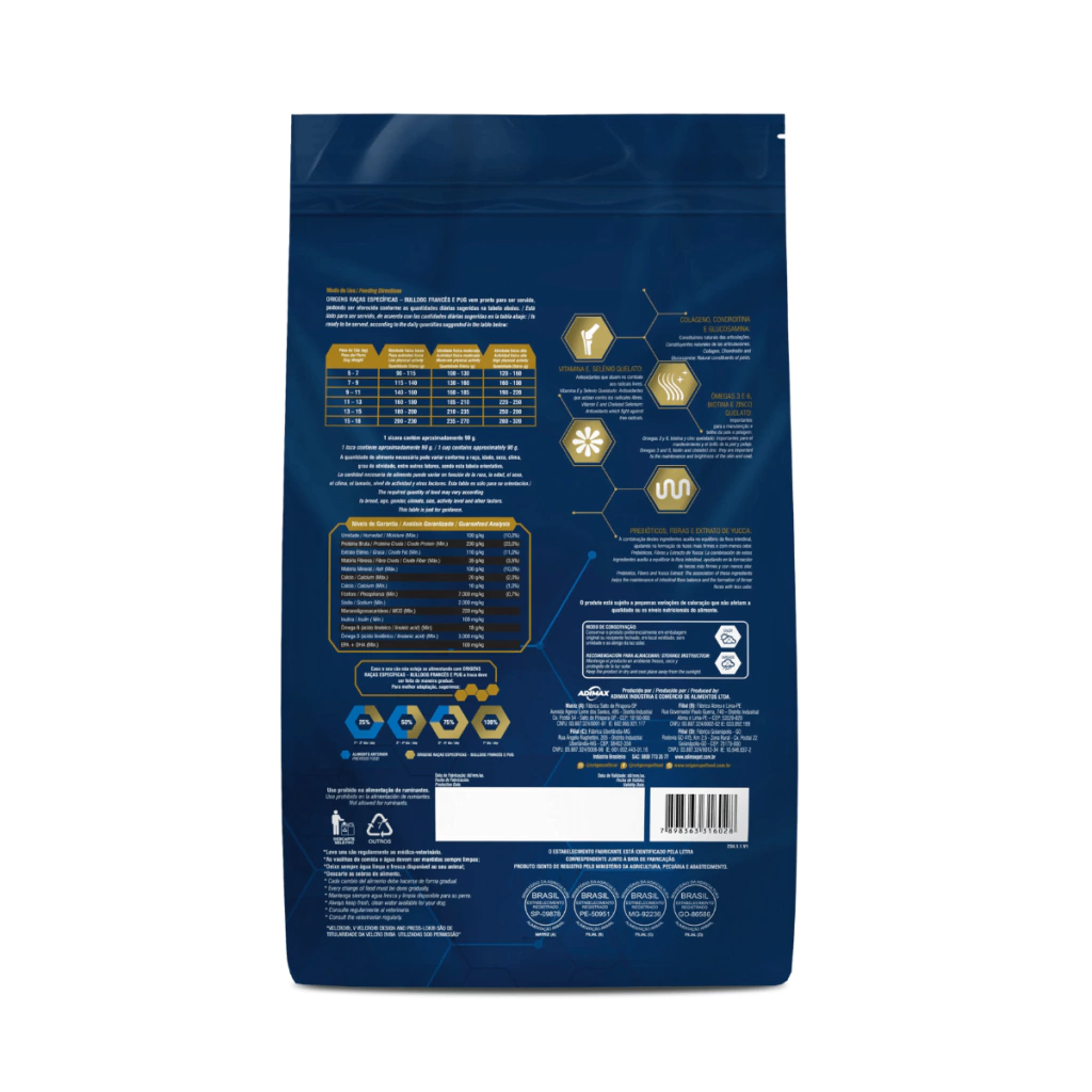Origens Raças Específicas é uma linha de alimentos Premium Especial para raças específicas que nutre o que há de melhor: o amor. Promover saúde e prazer a cada refeição é antes de tudo um ato de carinho, que estreita laços e prolonga os dias de alegria, amizade e amor incondicional entre tutores e seus cães. Origens Raças Específicas Bulldog Francês e Pug não contém corantes e aromatizantes artificiais e possui uma nutrição específica para cães adultos das raças Bulldog Francês e Pug.