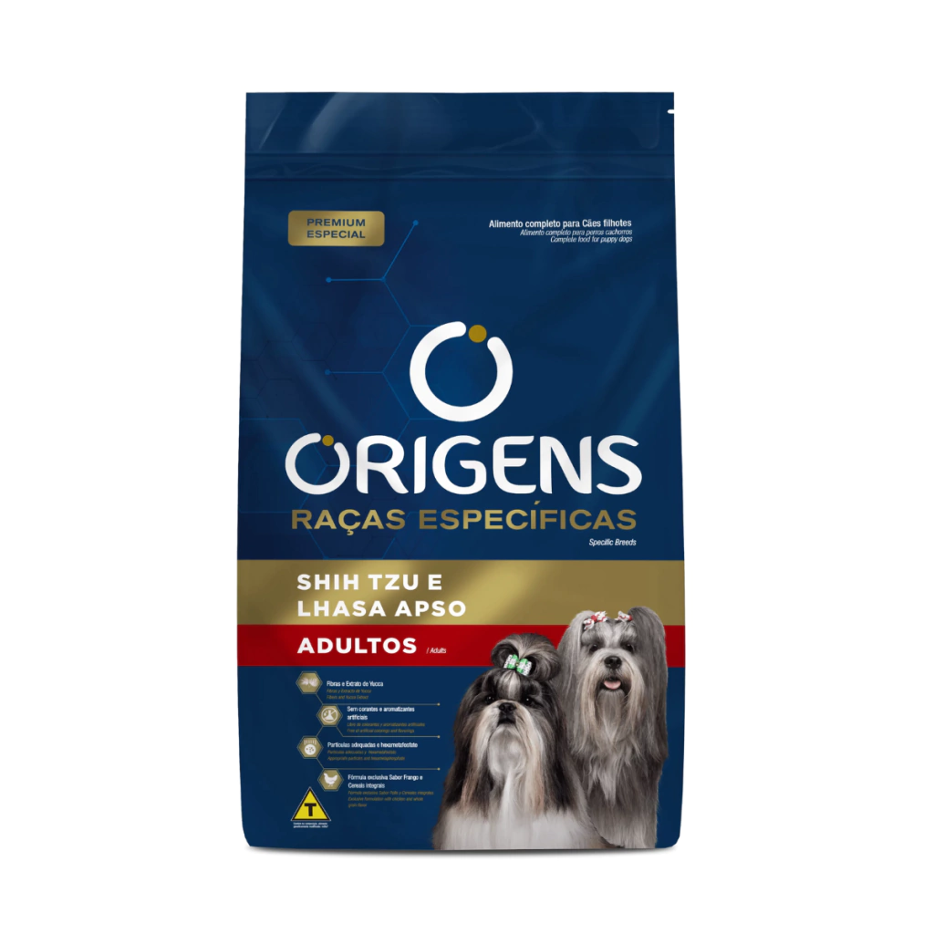 Origens Raças Específicas é uma linha de alimentos Premium Especial para raças específicas que nutre o que há de melhor: o amor. Promover saúde e prazer a cada refeição é antes de tudo um ato de carinho, que estreita laços e prolonga os dias de alegria, amizade e amor incondicional entre tutores e seus cães. Origens Raças Específicas Shih Tzu e Lhasa Apso não contém corantes e aromatizantes artificiais e possui uma nutrição específica para cães adultos das raças Shih Tzu e Lhasa Apso.