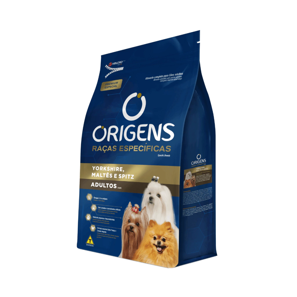 Origens Raças Específicas é uma linha de alimentos Premium Especial para raças específicas que nutre o que há de melhor: o amor. Promover saúde e prazer a cada refeição é antes de tudo um ato de carinho, que estreita laços e prolonga os dias de alegria, amizade e amor incondicional entre tutores e seus cães. Origens Raças Específicas Yorkshire, Maltês e Spitz não contém corantes e aromatizantes artificiais e possui uma nutrição específica para cães adultos das raças Yorkshire, Maltês e Spitz.