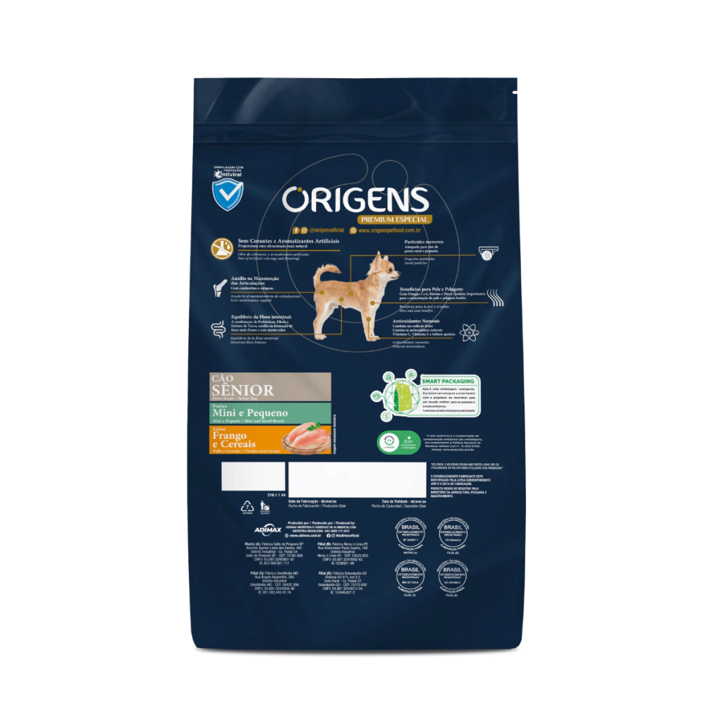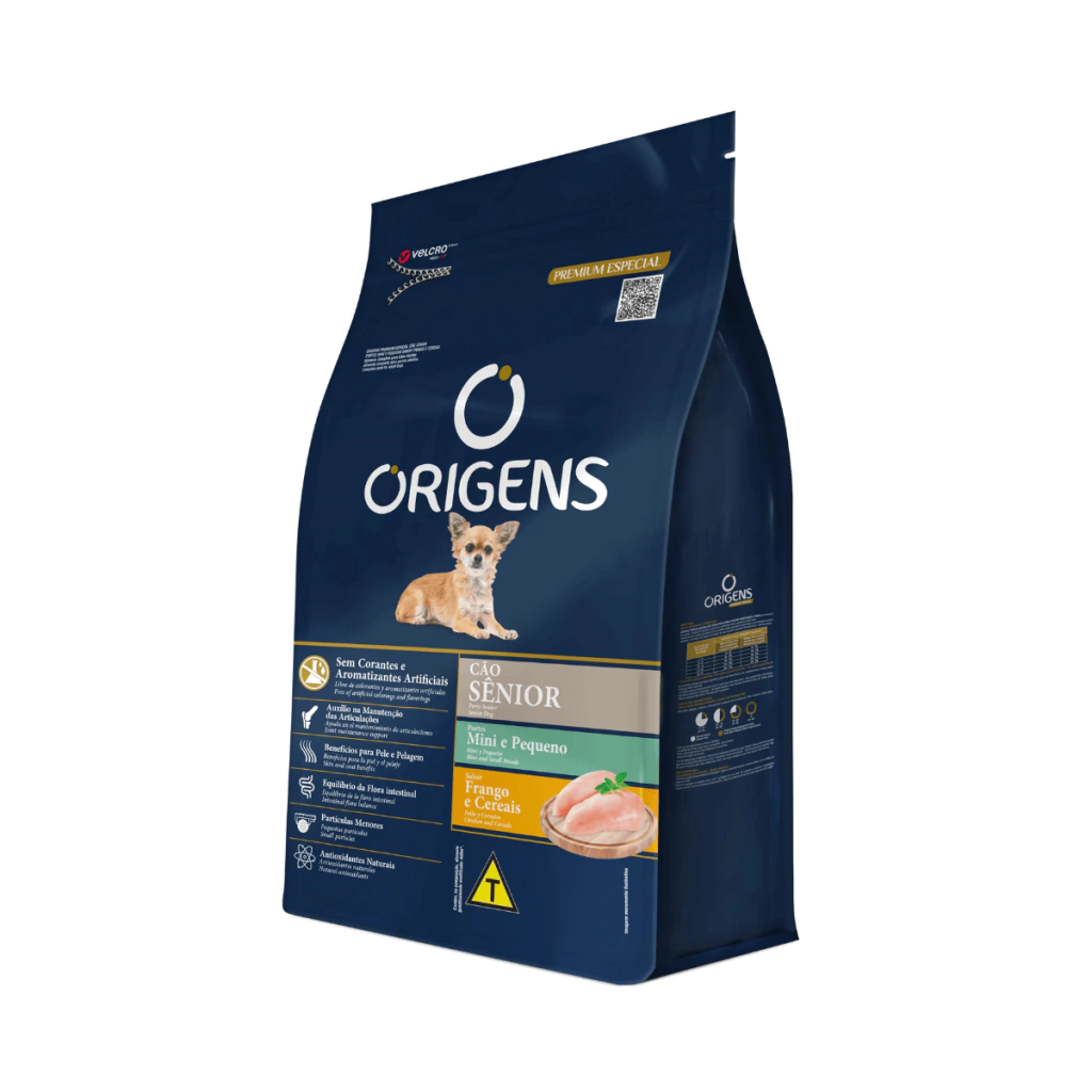 Origens é uma linha de alimentos Premium Especial que nutre o que há de melhor: o amor. Promover saúde e prazer a cada refeição é antes de tudo um ato de carinho, que estreita laços e prolonga os dias de alegria, amizade e amor incondicional entre tutores e seus cães e gatos. Origens Cão Sênior Portes Mini e Pequeno Sabor Frango e Cereais possui ingredientes de alta qualidade e não contém corantes e aromatizantes artificiais.
