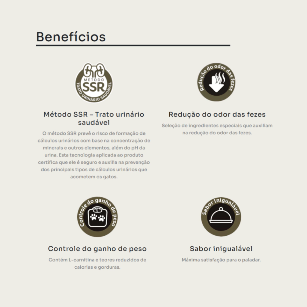 Trato urinário saudável: minerais balanceados e controle do pH urinário;
