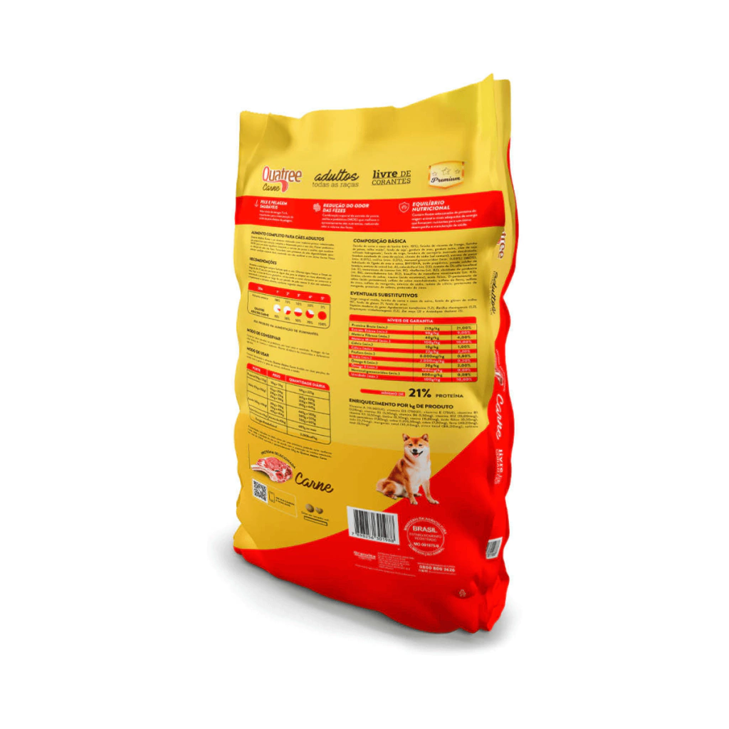A Ração Seca Quatree Carne para Cães Adultos é um alimento premium que oferece uma ótima nutrição para os cães. Possui matérias-primas selecionadas e prebiótico (MOS) que funcionam como um ótimo equilíbrio intestinal. Além disso, mantém uma alimentação completa e balanceada formulada com proteínas de alta digestibilidade.