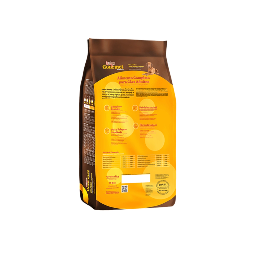A Ração Seca Quatree Gourmet Sem Corantes Cães Adultos Raças Médias e Grandes é um alimento elaborado com matérias-primas selecionadas que proporciona uma alimentação completa e balanceada para o seu cão. Possui polpa de beterraba e prebiótico (MOS) para um ótimo equilíbrio intestinal, e extrato de yucca, que auxilia na redução do odor das fezes. Formulado com proteínas de alta digestibilidade para oferecer condição corporal ideal, mantendo seu cão saudável e em ótima forma física.