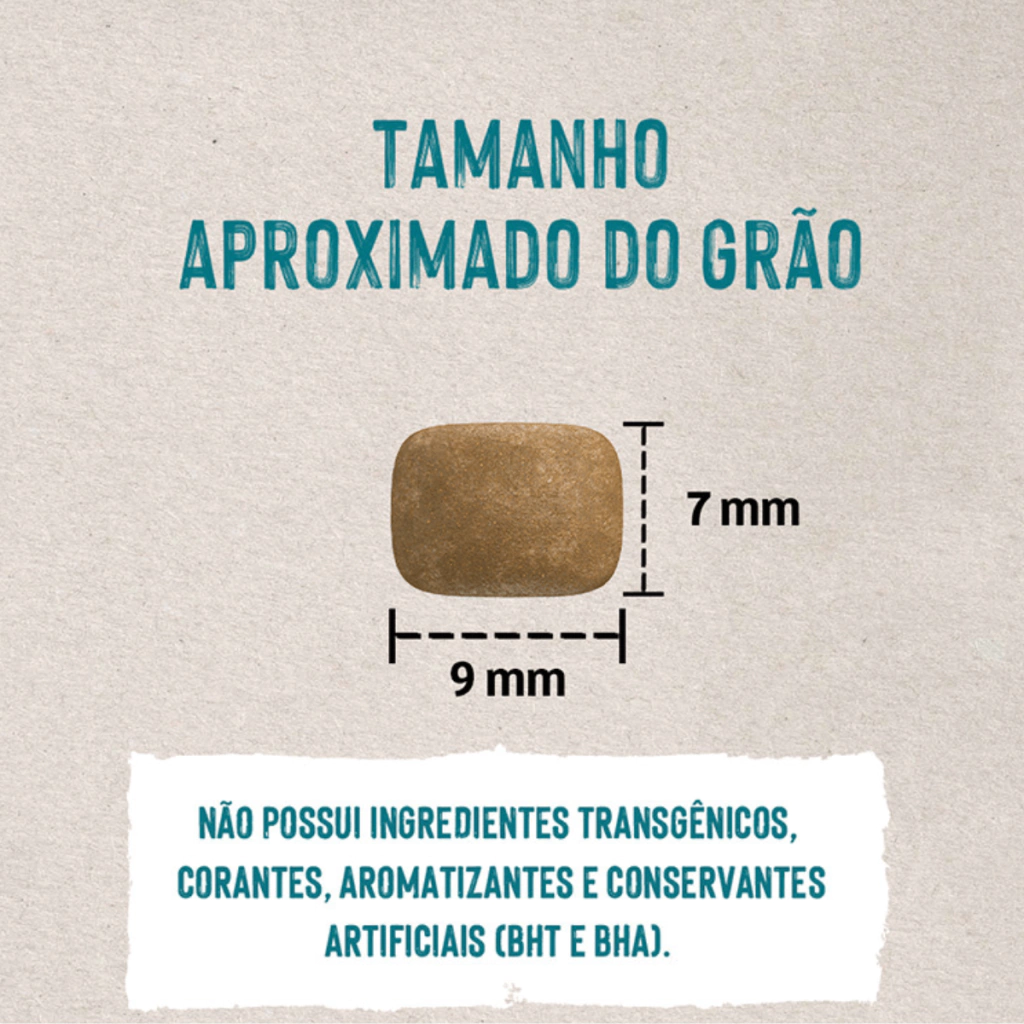 Farinha de vísceras de frango (mín. 25%), farinha de torresmo, arroz quebrado (mín. 20%), sorgo integral moído, farinha de peixes, gordura de aves, gordura suína, complexo de vegetais (mín. 3%) (farinha de batata-doce, polpa desidratada de beterraba, brócolis desidratado, cenoura desidratada), farelo de arroz, grão de linhaça, levedura de cervejaria inativada desidratada, zeólita, lignocelulose, cloreto de potássio, hexametafosfato de sódio (mín. 0,1%), sulfato de glicosamina, sulfato de condroitina, parede celular de levedura (fonte de beta-glucano 1,3-1,6), hidrolisado de fígado de aves e suíno, mananoligossacarídeo (MOS) (mín. 0,1%), extrato de yucca (mín. 0,02%), extrato de alecrim (mín. 0,001%), tocoferol (concentrado mín. 0,09%), ácido propiônico, acetato de retinol (vit. A), colecalciferol (vit. D3), ácido ascórbico (vit. C), acetato de DL-alfa-tocoferol (vit. E), mononitrato de tiamina (vit. B1), riboflavina (vit. B2), cloridrato de piridoxina (vit. B6), cianocobalamina (vit. B12), menadiona bissulfito de nicotinamida (vit. K3), biotina, cloreto de colina, niacina (vit. B3), ácido fólico (vit. B9), D-pantotenato de cálcio (vit. B5), sulfato de cobre monohidratado, sulfato de ferro, sulfato de zinco, sulfato de manganês, selenito de sódio, iodato de cálcio, minerais quelatados (proteinato de manganês, proteinato de selênio, proteinato de zinco).