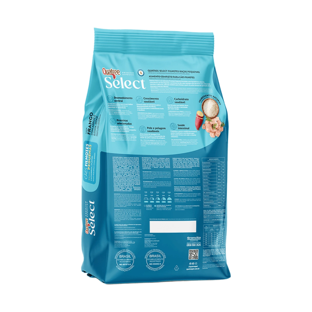 Com uma formulação completa e equilibrada, a Ração Quatree Select para Cães Filhotes Raças Pequenas é a escolha ideal para garantir o melhor começo de vida para o seu filhote. A qualidade e a naturalidade dos ingredientes asseguram uma alimentação saudável e saborosa.