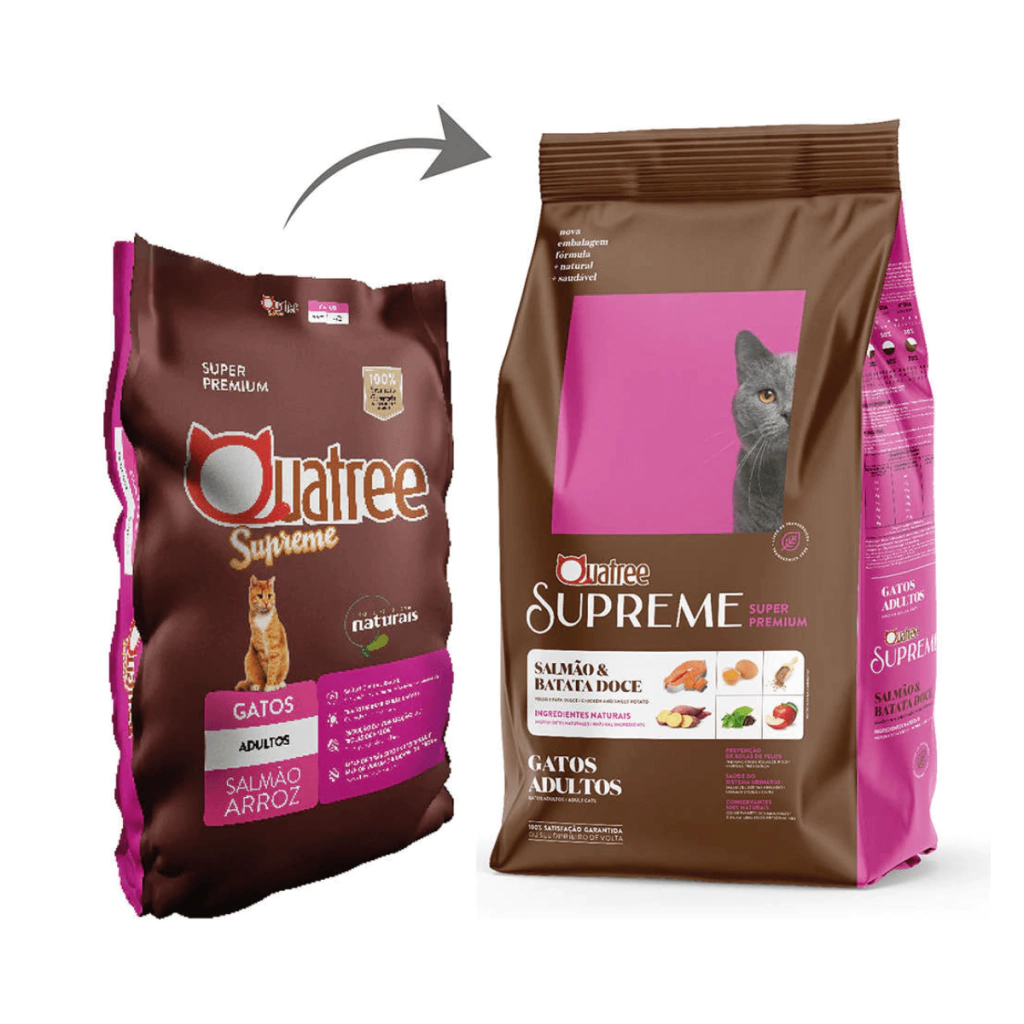 A Ração Seca Quatree Supreme Salmão e Batata Doce Gatos Adultos é um alimento Super Premium formulado especificamente para atender as exigências de gatos a partir de 12 meses. Os ingredientes nobres em sua composição oferecem uma nutrição completa e balanceada. O equilíbrio de minerais contribui com a saúde do trato urinário. Inclui DHA, que auxilia a manutenção da saúde cognitiva e visão. Contém antioxidantes naturais e prebióticos, ingredientes que proporcionam mais vitalidade e longevidade para o seu gato.