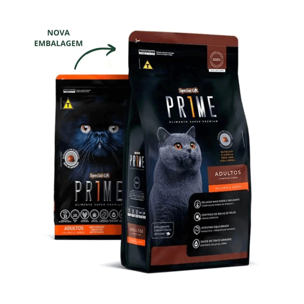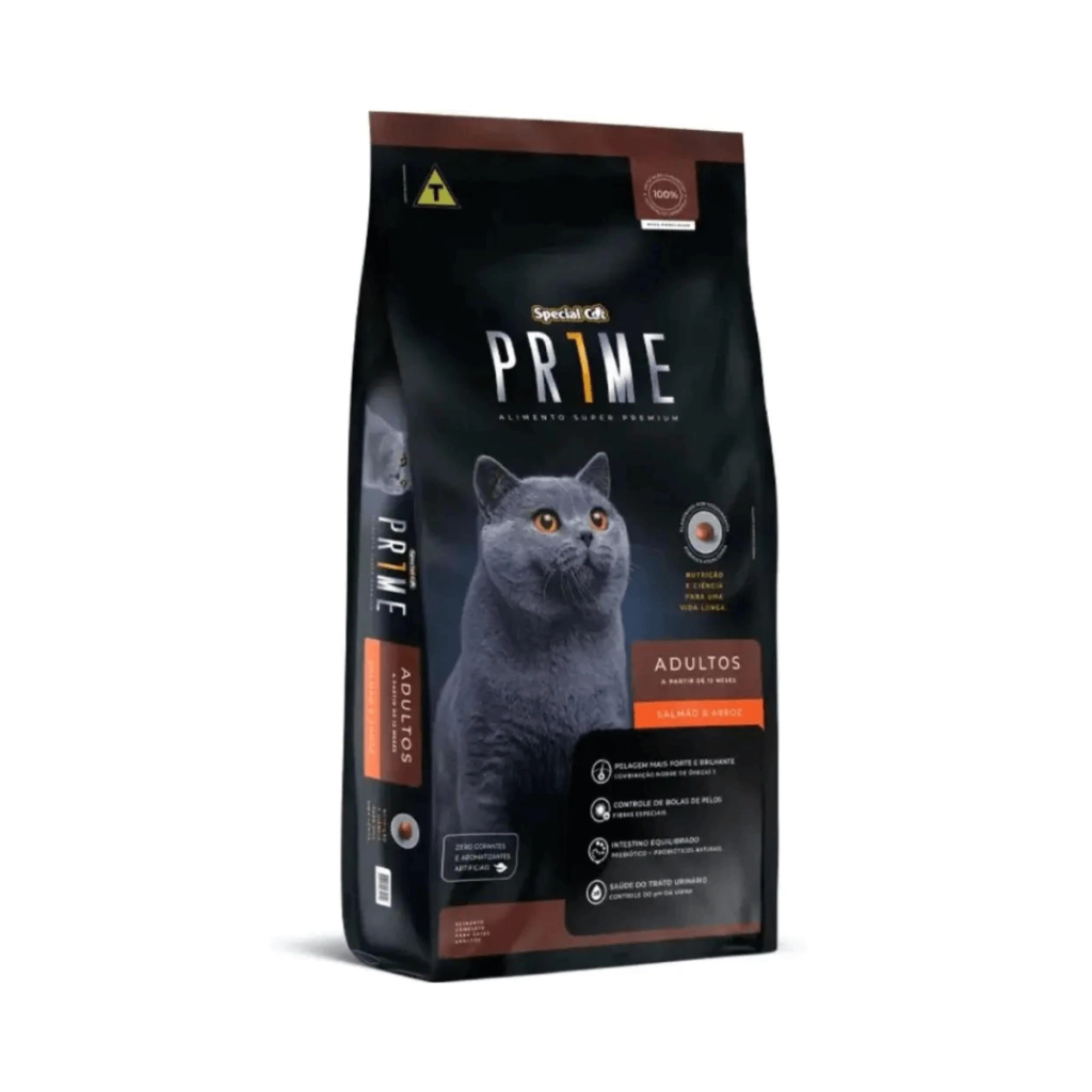A Ração Special Cat Prime Salmão e Arroz para Gatos Adultos é formulada com ingredientes nobres como a combinação de ômegas para uma pelagem mais forte e brilhante. Contém prebióticos e probióticos contribuindo para saúde intestinal, além de fibras especiais para o controle de bolas de pelos.
