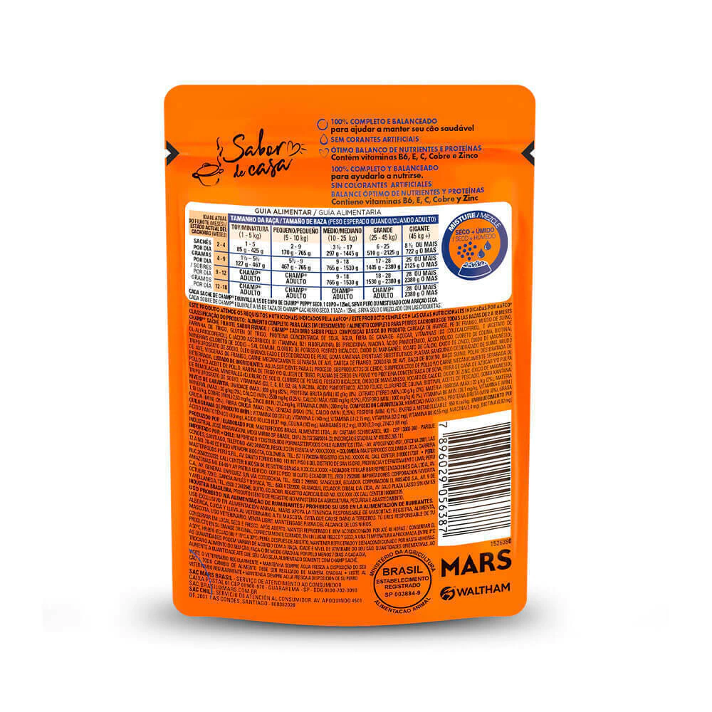 A Ração Úmida Champ Sachê Sabor Caseiro Frango é a escolha ideal para complementar a alimentação do seu filhote, proporcionando um aumento no valor nutricional quando misturada à ração seca. Enriquecida com vitaminas e minerais essenciais, como a vitamina B6 para um sistema nervoso saudável, e a vitamina E, que age como antioxidante, protegendo as células do corpo do cão. A vitamina C, por sua vez, contribui para o fortalecimento do sistema imunológico e o bem-estar do seu melhor amigo.