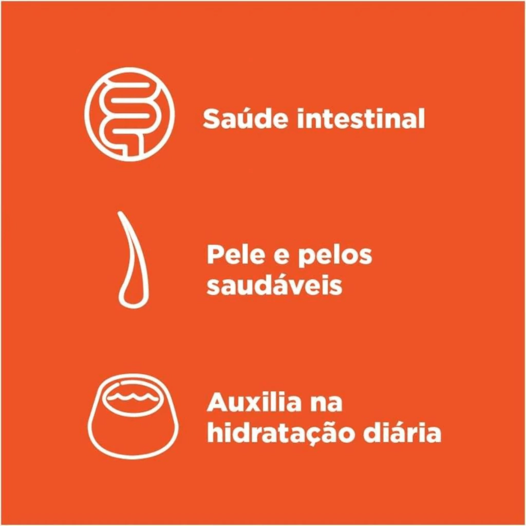 Saúde da pelagem e pele: Auxilia na manutenção de uma pelagem brilhante e saudável, promovendo também a integridade da pele.