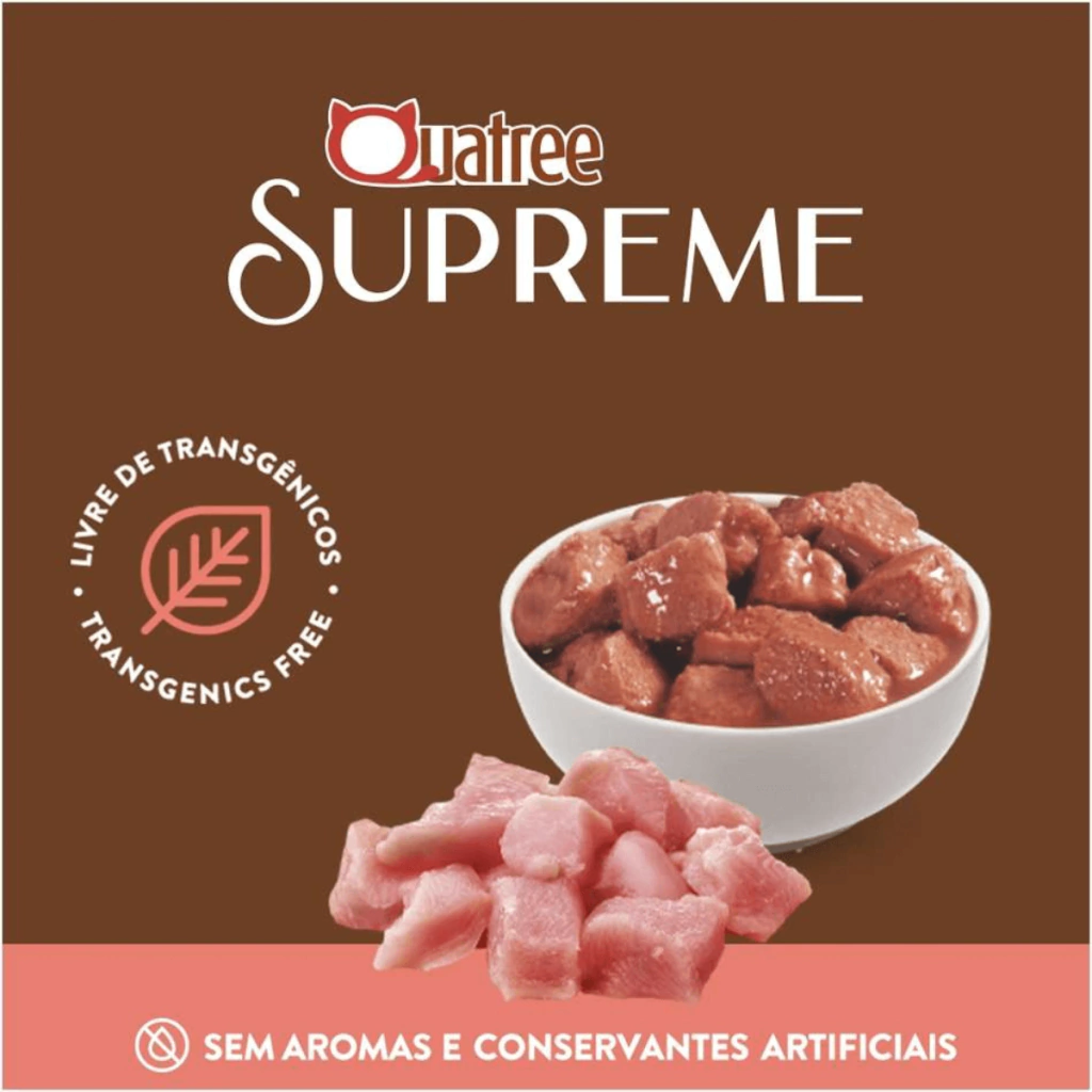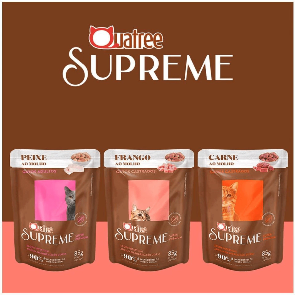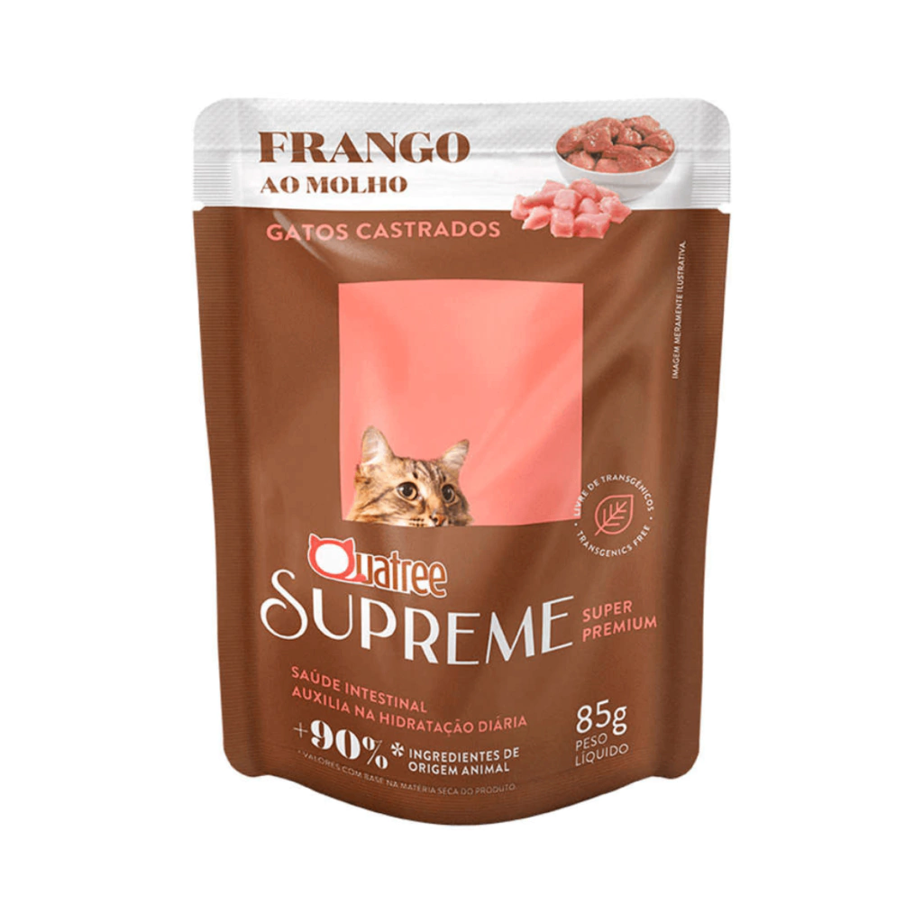 Ofereça ao seu gato castrado uma alimentação completa e saborosa com a Ração Úmida Quatree Supreme Frango. Formulada especialmente para atender as necessidades nutricionais de gatos castrados, esta ração Super Premium é rica em proteínas de alta qualidade, com mais de 90% dos ingredientes de origem animal, contribuindo para a saúde e vitalidade do seu pet.