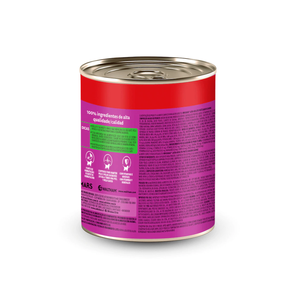 Ração Úmida Whiskas Lata Patê de Carne para Gatos Adultos
