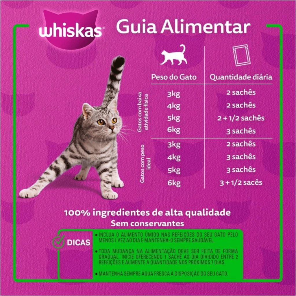 Feito com ingredientes naturais de alta qualidade, além de conter a porção ideal de proteínas, vitaminas e sais minerais, este sachê facilita a mastigação e a digestão, proporcionando uma alimentação nutritiva e prática. Sem conservantes, corantes ou aromatizantes artificiais, é uma escolha segura e saudável para o seu gato.