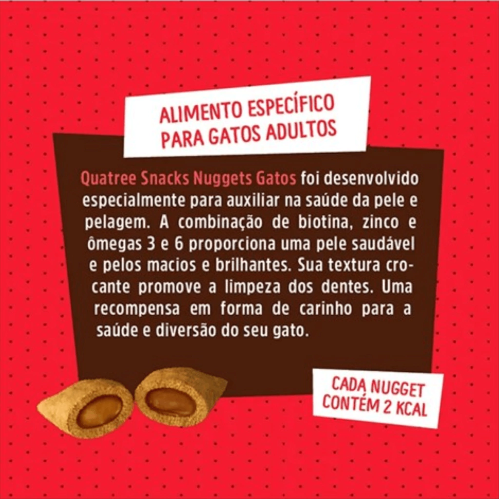 Os Snack Quatree para Gatos Adultos Sabor Carne Bola de Pelo são a escolha perfeita para gatos adultos que merecem um petisco saboroso e saudável. Com uma fórmula 100% livre de transgênicos e corantes artificiais, esses snacks crocantes e gostosos não apenas agradam ao paladar do seu felino, mas também promovem a saúde oral, auxiliando na limpeza dos dentes. Enriquecidos com fibras especiais, eles ajudam a prevenir a formação de bolas de pelo, tornando cada momento de petisco um ato de cuidado e carinho. Proporcione ao seu gato o delicioso sabor da carne e a saúde que ele merece!