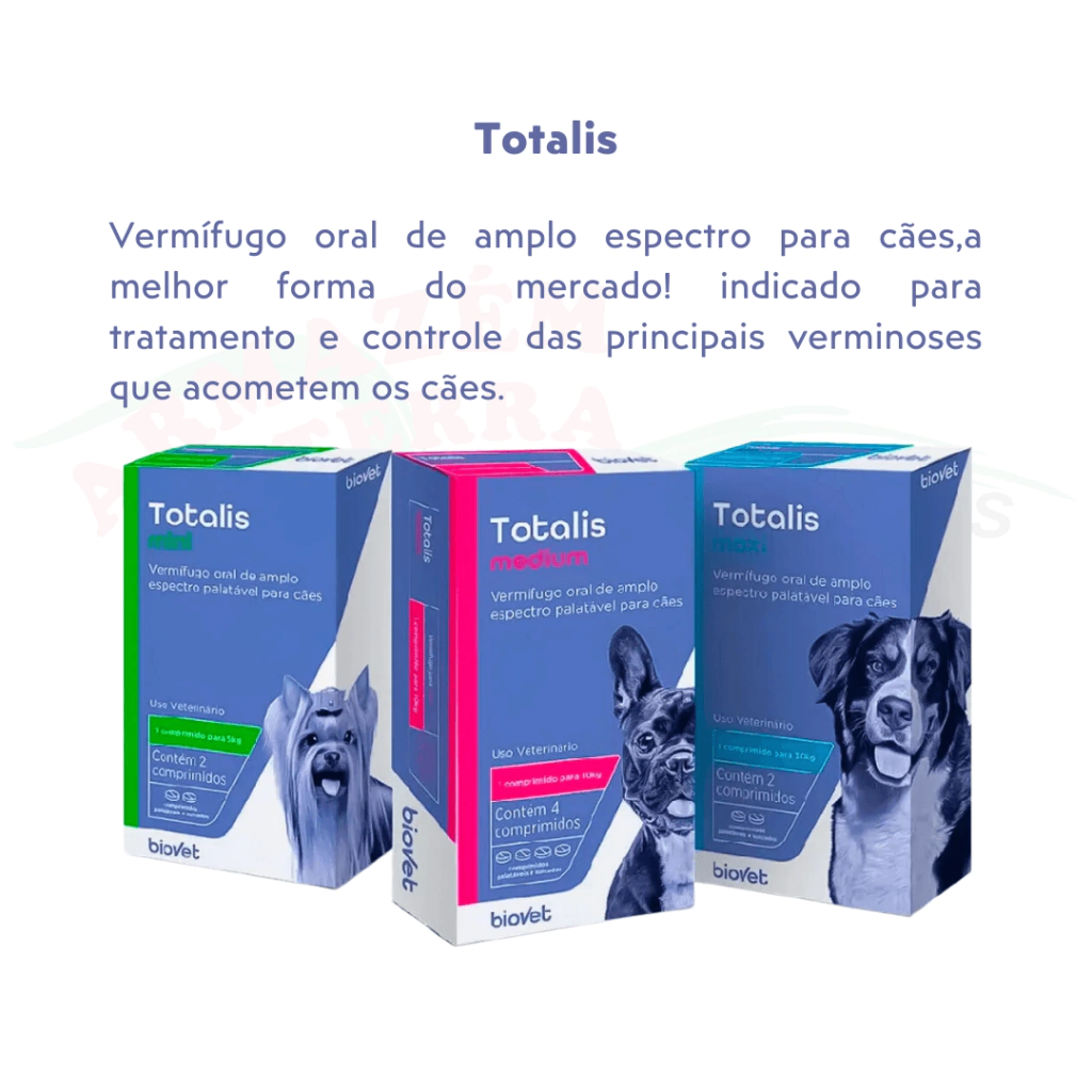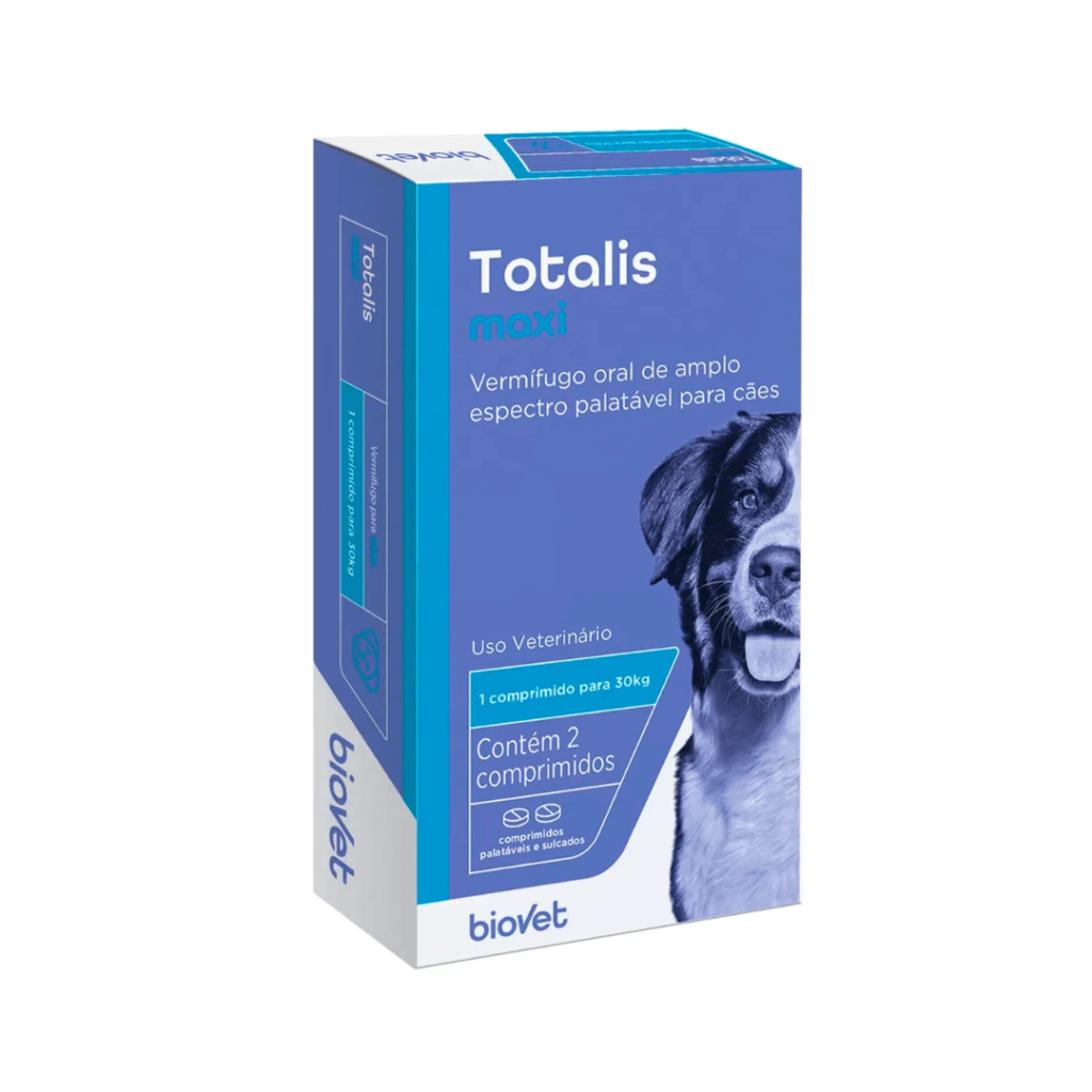 Totalis Maxi é um vermífugo de amplo espectro indicado para cachorros de todos os portes e raças. Recomendado para o tratamento e a prevenção das principais verminoses que acometem os cães, o vermífugo Totalis Maxi tem a formulação mais completa do mercado.
